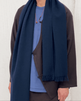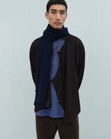 An immensely soft scarf made from the world’s finest yak khullu. It is woven in a classic twill, using natural brown wool in the warp and natural white in the weft. Its double-faced design creates a subtle interplay of shades. It is finished with hand-knotted tassels.