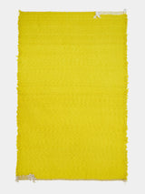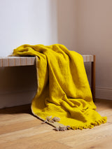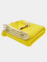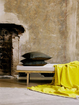 This 100% yak khullu blanket is made from Norlha’s heaviest weave. Its handspun weft creates a softly ridged texture across its surface. It features thick handspun fringing along its longer sides and a border of hand-woven yarn in a lighter tone along its selvedge.