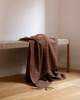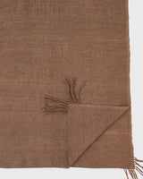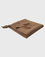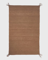 A yak khullu and silk Blanket with handspun yak wool in its weft and silk in its warp. Woven in a rectangular shape with hand-sewn tassels on all four corners.