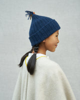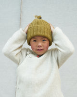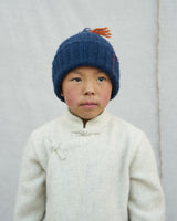 This children's beanie is hand-knitted from 100% yak khullu. It features a wide rib, playful tassel and contrasting, hand-embroidered stitch detail, offering exceptional warmth through the colder months.