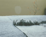 An 100% yak khullu blanket, composed of handspun, classic and net weaves from Norlha’s archives. The blanket’s woven boiled panels add a unique blend of textures and softness, finished with fringing and irregular, raw edges.