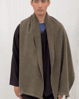 An intensely soft 100% yak khullu scarf. The finished fabric is boiled for added density and a fleece-like touch. It features a subtle, herringbone design.