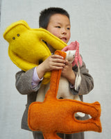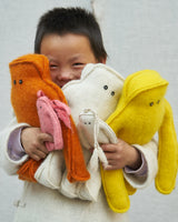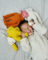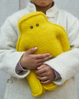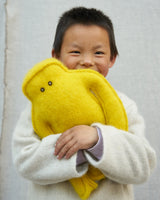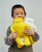 This exceptionally soft Yeti Toy is handwoven & handsewn from 100% natural white yak wool lightly boiled for a dense, fleece-like touch, featuring a playful small bell on the arm.