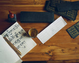 This blessing is hand-painted in copper sand ink on black paper by Lhagon Kyap, a local painter who specialises in thangkas (Tibetan religious scrolls).