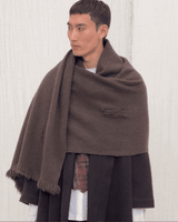 This 100% yak khullu scarf is based on an early weave from Norlha’s archives. It features handspun yak khullu in the warp and weft, which gives it density and weight. This version also features wide incisions made by hand across its surface to create a distressed effect.