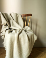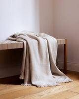 This luxurious blanket is handwoven from 100% natural white yak khullu. Its threads are masterfully handspun by a single artisan over the course of 11 days, ensuring the finest and softest yak wool thread possible. Its dense weave offers rugged warmth and a comforting weight which is ideal for the colder months.