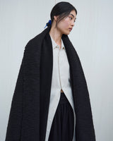 A ruggedly soft yak khullu and sheep’s wool scarf. Its distinctive texture is created by a handspun yak wool weft, which is combined with a yak and sheep’s wool-blend warp. The sheep’s wool adds strength, while the yak khullu gives exceptional warmth.