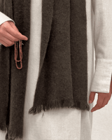 This supremely soft scarf is made from pure yak khullu and lightly boiled for a dense, fleece-like touch. Its weave and finish are the same as the Nomad Net Boiled Scarf but half the width.