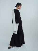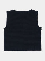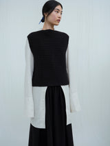 This intensely soft sleeveless top is handknitted using yak khullu thread. It features a tabard design, with ribbed armholes, neckline and hem. Ideal for layering, it will keep the chest warm and protected through the colder months.