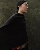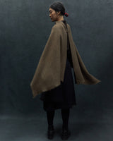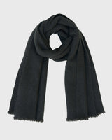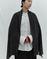 This intensely soft oversized scarf is woven from 100% yak khullu. Its loose weave was developed by our master weaver using only two of the four pedals on the loom. These Nomad pieces have undergone an additional process of boiling, transforming as their fibres expand and compress, creating a slight density in the weave.