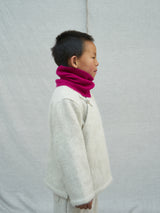 - Yak khullu: This piece was made using the khullu of 1 yak. Khullu is the ultra-fine, downy undercoat that keeps yak insulated during harsh Tibetan winters. Each summer, the yak naturally shed this down, which is then carefully collected by hand.