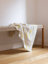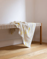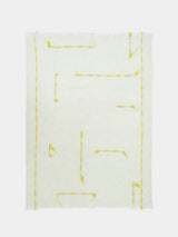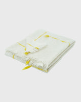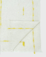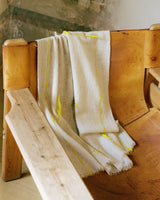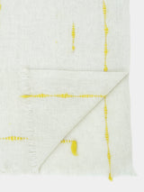 Ideal for a newborn, this incredibly soft yak khullu blanket is warm and lightweight. It has been washed for added softness and a downy touch. Its design features a delicate sequence of yellow handspun thread.
