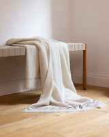 This intensely soft, lightweight throw is handwoven from 100% natural white yak khullu. Its generous size means it can be used as a blanket or worn as an oversized shawl. It features an irregular, handspun thread detail that runs along the width of its top and bottom edges.