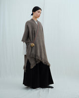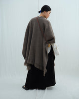 Engulfing and sumptuous, this oversized open-front cape is made from pure yak down. With an elongated back, it can be worn like a blanket, with its generous draping wrapped around or slung over the body.