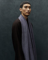 An immensely soft scarf made from the world’s finest yak khullu. It is woven in a classic twill, using natural brown wool in the warp and natural white in the weft. Its double-faced design creates a subtle interplay of shades. It is finished with hand-knotted tassels.