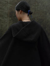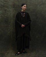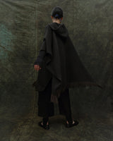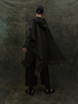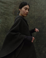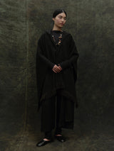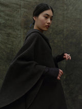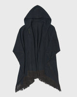 This midweight open-front hooded poncho is made in a pure yak khullu herringbone. It drapes generously over the body with a cropped length for easy wear. The fabric is dense and soft for ultimate winter warmth and comfort.
