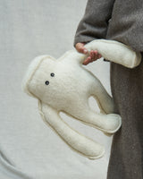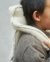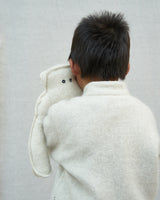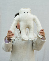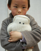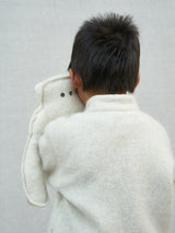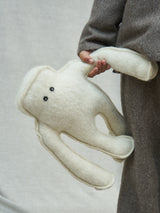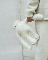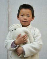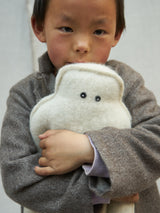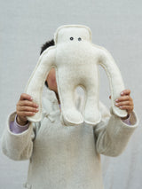 This exceptionally soft Yeti Toy is handwoven & handsewn from 100% natural white yak wool lightly boiled for a dense, fleece-like touch, featuring a playful small bell on the arm.