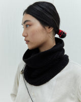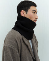 Handknitted neck warmer in 100% yak wool. With a patchwork of softly textured garter stitch and ribbed knits, it offers cosy warmth and comfort through the colder months.