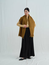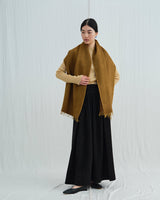 This midweight scarf is made from a naturally pleated yak khullu and silk-blend woven fabric that has been over-felted with pure yak khullu. This hand-finished process adds extra warmth and density while creating a textural and tonal variance in the finished fabric.