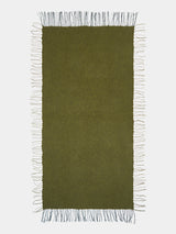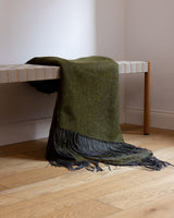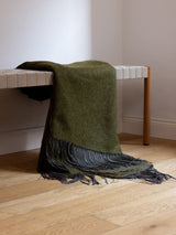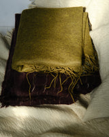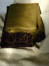 This midweight throw is made from a delicately textured yak khullu and silk-blend woven fabric that has been over-felted with pure yak khullu to give extra warmth and density. It features elongated fringing in contrasting shades on the warp and the weft.