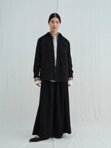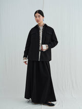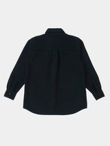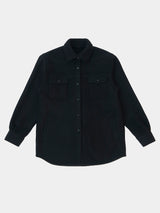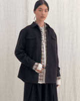 A densely warm overshirt in natural grey yak khullu. It features brown horn buttons and patch pockets on the chest. Easy to layer, the shirt will soften over time, gradually becoming like a second skin.