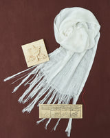 The Sky Set features a Four Elements Mantra - a prayer to the elements that unite our life on earth; a hand carved wooden parasol which symbolises protection - from the sun's rays but also from illness, misfortune, and danger; and a Khata - presenting a khata is a gesture that embodies purity and sincerity and is done by Tibetans on auspicious occasions. These khatas, often white, symbolise the giver's untainted heart.