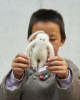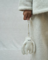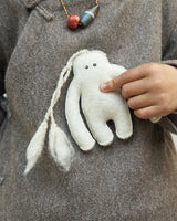 This small Yeti Toy is handfelted & handsewn from 100% natural white yak wool. It features a braided natural white sheep wool cord that can be left loose or tied to hang the yeti as a decoration.