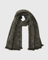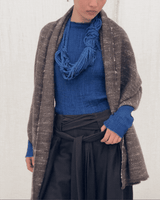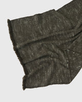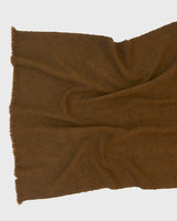 A 100% yak khullu scarf. Its weft is woven from handspun wool, which gives it a softly rugged, uneven texture. This scarf is made using the naturally shed wool of four yak, which is then spun by a single artisan over two days in our atelier.