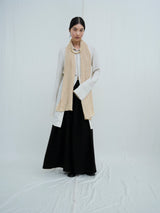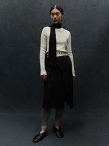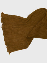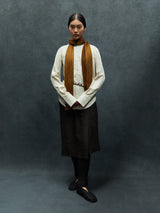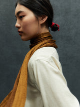 This lightweight scarf is made from a yak khullu and silk blend, a luxurious combination of fibres that creates a crinkled effect in the fabric. With its narrow width, it can be wrapped around the neck while keeping a slender profile.