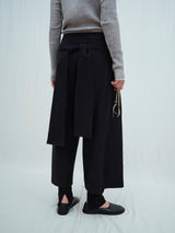 Finely woven trousers in a rugged silk and yak khullu blend. These wide trousers are worn by folding both sides towards the front of the piece, tied to create the effect of pleats with a strap closure.