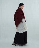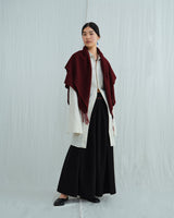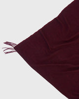 A yak khullu and silk scarf with handspun yak wool in its weft and silk in its warp. Woven in a square shape with hand-sewn tassels on all four corners.