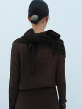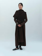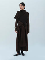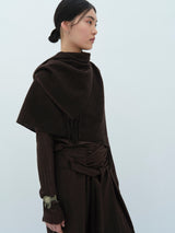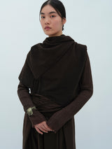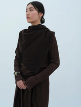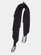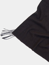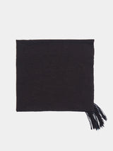A yak khullu and silk scarf with handspun yak wool in its weft and silk in its warp. Woven in a square shape with hand-sewn tassels on all four corners.