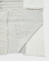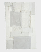 An 100% yak khullu blanket, composed of handspun, classic and net weaves from Norlha’s archives. The blanket’s woven boiled panels add a unique blend of textures and softness, finished with fringing and irregular, raw edges.